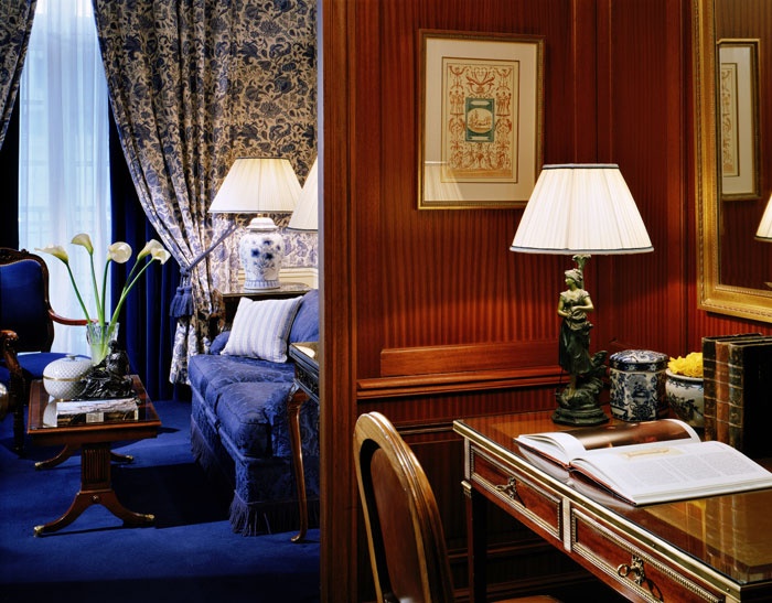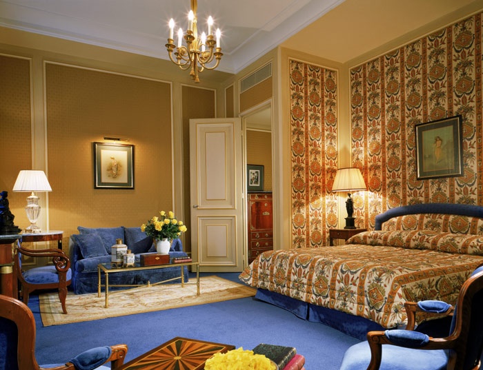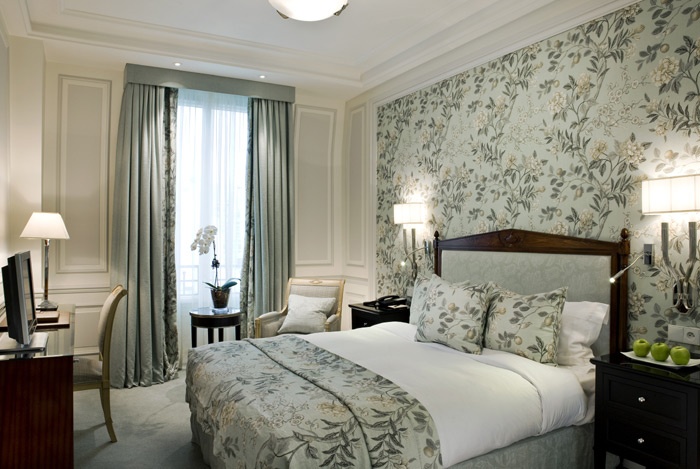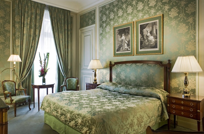 Каждый комфортабельный номер отеля уникален. В оформлении использованы драгоценные породы дерева, фарфор, бронза, серебро, антикварная мебель гравюры и дизайнерские ткани, воссоздающие интерьер эпох Людовика XV, Наполеона I, Луи Филиппа и Регентства.