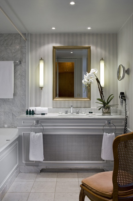 Junior Suite (40-42 кв.м.) - роскошный номер с видом на внутренний сад или улицу rue Jean Goujon, состоит из спальни с кроватью king size или 2-мя односпальными кроватями, гостиной и большой мраморной ванной комнаты с ванной и душевой кабиной.