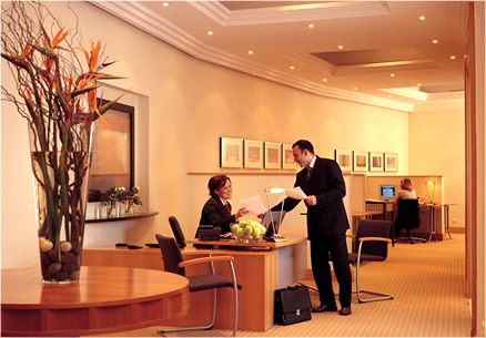 В бизнес-центре есть специальная стойка для обслуживания групп.