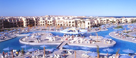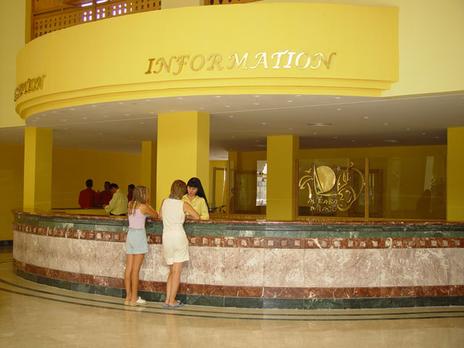 | Отдыхал в этом отеле в апреле 2009 года, ну что можно сказать в Египте был не первый раз, отель по 5 бальной школьной системе тянет на 3 с минусом, я особенно не за-морачиваюсь как некоторые люди не считаю муравьев в номере, не смотрю на треснув-шую плитку, но отель действительно оставляет желать лучшего. Изложу некоторые мо-менты поподробнее: 1. Питание. Я бы поставил вообще двойку, в отеле 3 ресторана но работают только 2 и в них постоянно нет мест что бы просто придти и поесть надо отстоять в очереди, притом ужин с 18-30 до 22-00 но менеджеры в 20-00 вешают табличку closed и никого не пускают направляют в другой ресторан, в другом же ресторане народу столько что стоять надо от 30 минут или вообще комическая ситуация там так же закрыто, пришлось один раз даже сорваться и наорать на всех там менеджеров ресторана (сразу пустили внутрь) я так и не понял почему они закрывали ресторан так рано, зайдя внутрь особого изыска там не най-дешь, все одно и тоже изо дня в день и очень маленький выбор блюд, официанты посто-янно достают предложениями сока (3 доллара) притом по несколько раз, что тоже раздра-жало (не настолько же мы тупые что бы предлагать по несколько раз), крепкие напитки там не дают из алкоголя только пиво и вино, и то система такая подходит официант (мо-жет и вообще не подойти) спрашивает, что будете пить ты заказываешь и все он уходит с концами и больше не возвращается, мы потом вообще ничего не заказывал и это почти со всеми (не пойму, зачем вообще подходить и спрашивать) куда менеджеры смотрят я так и не понял. Питаться лучше будет в Алладине там выбор блюд больше, если хотите на ужин подойдите в 8-00 на рецпшен и там дадут талон туда, но придя туда нас впустили и вслед сказали прям на русском, - что пришли сюда сидели бы у себя в Али бабе. 2. Территория, Номер. Территория ничего красивая, есть где погулять и что посмотреть, кругом зелень все ухожено, номера как говорят лучше дать 20 долларов что бы поселили в нормальный, я дал так что попали в хороший, других не видел поэтому говорить не могу. У нас был большой номер с большим балконом, вопрос по уборке не было, но было одно но это когда приходишь с пляжа с мыслью помыться и пойти в бар, на ужин, а полотенец нет и говорить уборщику что бы он принес бесстолку, он кивает головой говорит хорошо и ничего не приносит, пришлось звонить на рецепшен и опять же скандалить через 15 ми-нут приносят и еще нагло ждут чаевых я чуть не упал от такой наглости. Поэтому бросив полотенце на пол что бы поменяли вы их дождетесь минимум в 18-30, 19-00. И еще был момент в последний день отдыха к нам пришел вечером уборщик и сказал ну что вам по-нравилось как он убирался? Я ответил ничего нормально, тогда он протянул руку и сказал тогда дай денег за это))) занавес закрывается)). 3. Пляж. Пляж большой проблем с лежаками не было можно было придти и в 9-00 и 10-00 утра занять место можно, правда выбирать не придется, пляж идет на 3 отеля Алладин и Жасмин, купаться однозначно лучше ходить в Жасмин (как говорят лучший пляж в Хур-гаде) там есть огромные коралловые рифы, вход песок, Али баба и Алладин перед входом камни надо либо специальную обувь что зайти либо с пирса купаться. На пляже доставали (очень) официанты с предложениями тематических вечеров (по 10 долларов) там танцы живота, юбка танец и т.д. притом за день могли по 5-6 раз подойти и нагло предлагать да-же если ты л