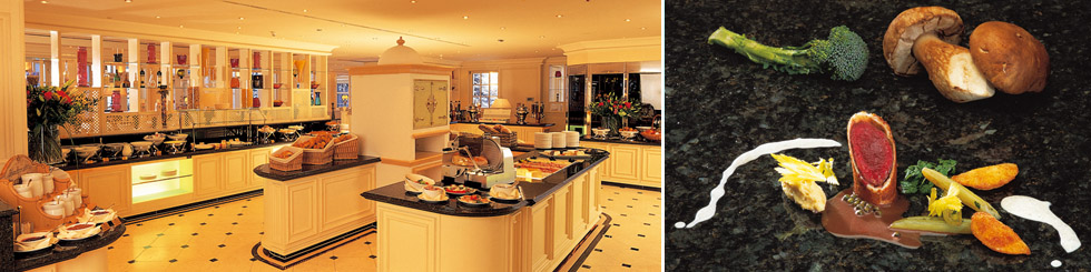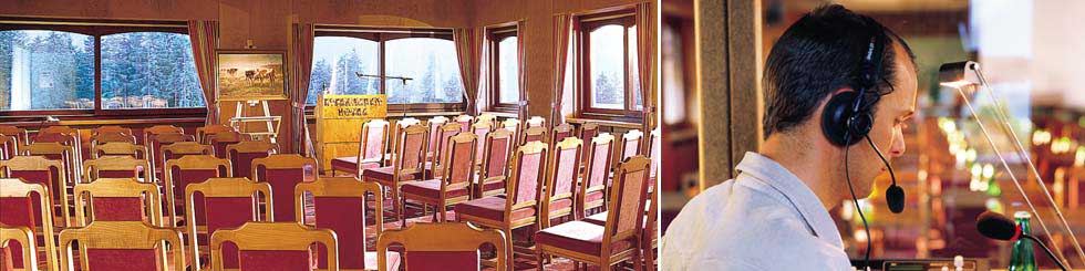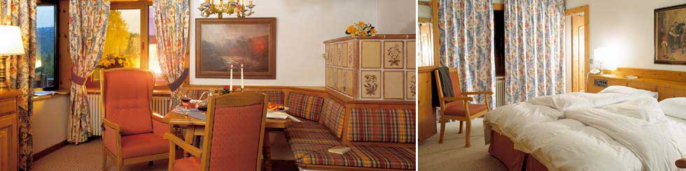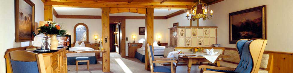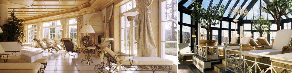 панорамный Suite (120 кв.м, терраса 100 кв.м): расположен на 8-м этаже, из окон открывается великолепный вид на Альпийские горы. Состоит из прихожей, большой гостиной с кафельной печью и уютным уголком, великолепной спальни, второй спальни либо столовой, большой ванной комнаты с джакузи, второй ванной комнаты. Номер отличает очень богатое оформление, есть несколько телевизоров, стереоустановка.