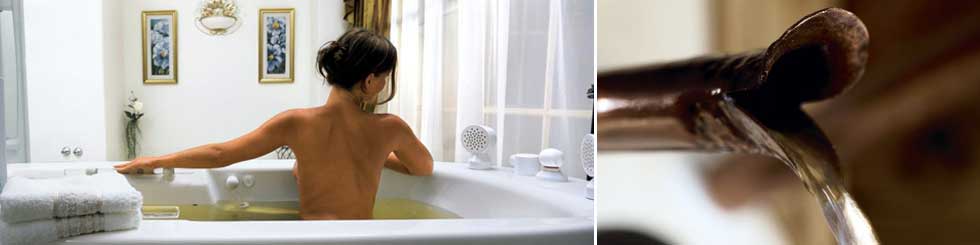 Suite II (107 кв.м): состоят из двух спален, двух гостиных (одна с кафельной печью), двух отдельных туалетов, двух ванных комнат (в каждой: ванна / душ, биде, фен, балкон и терраса);
