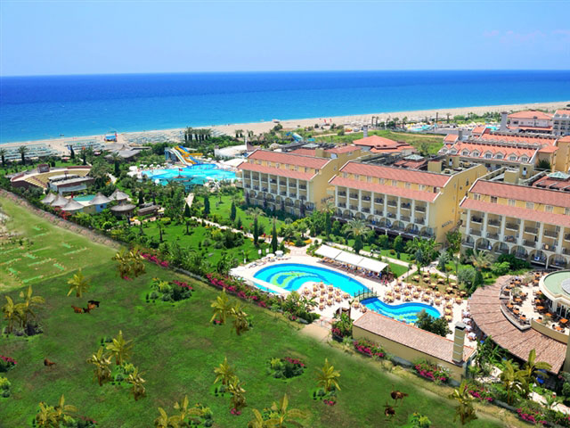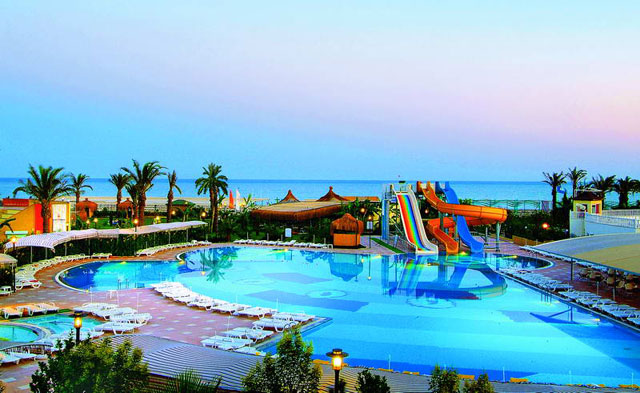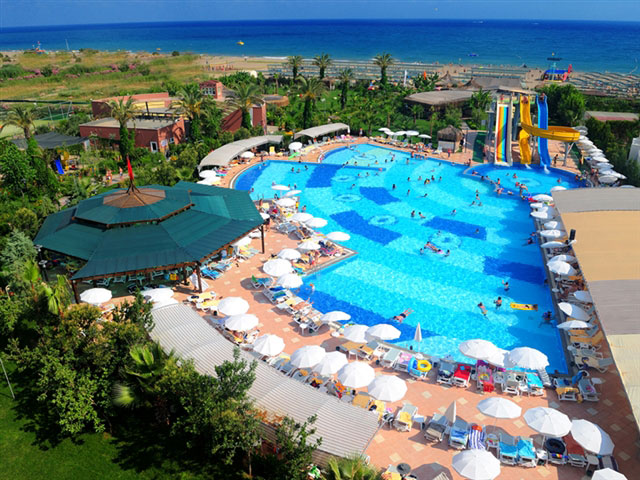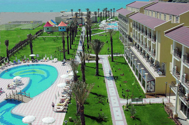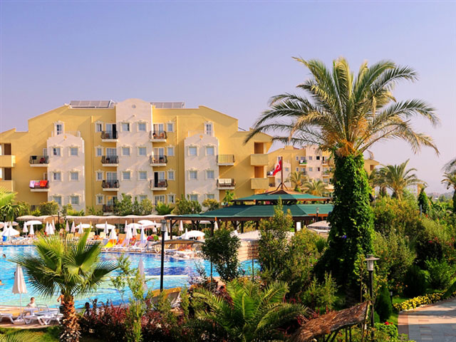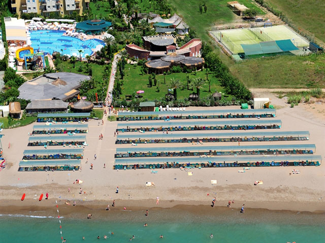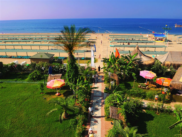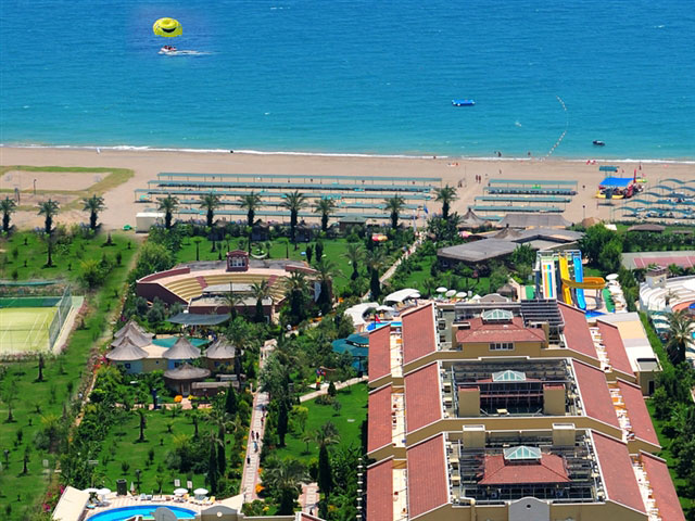 | Вернулись 21-го августа 2006. Начитались отзывов перед отъездом, ехали со страхом, что все подтвердится. Но ничего подобного. Ездили через Tez Tur. Мы заказали индивидуальный трансфер, т.к. у нас семейка из пяти человек, были в отеле через 45 минут, думаю, что те, кто ехал автобусом в более близкие отели, добирались даже дольше. Поселили нас сразу по приезду. Номер - хороший, мы заказали фэмили рум, самый дальний корпус, но это было даже плюсом, т.к. у нас не было слышно дискотеку. Вид на соседний отель через пустырь (его вроде начали облагораживать), и хорошо видно море. Но мы на балконе не сидели и в номер приходили только спать, мы же не в номере сидеть ехали. Там кто-то писал про уборку, что не могли договориться о времени уборки. Господа, учитывая, что все горничные говорят только по турецки, всегда можно им показать на часах в какое время вас не будет в номере. Мы так и поступали, проблем не было вообще. Никто к нам не вламывался с насильной уборкой. Про анимацию на немецком, правда, но учитывая, что в отеле всего 5-7 русских семей, а детей до 13 лет и того меньше, странно требовать анимацию на русском. Но аниматоры прекрасно говорят на родном русском языке, т.к. из команды аниматоров Оля, Юля и Света из Чебоксар и Гюзель из Киргизии. Есть еще Марек из Польши, Мелани из Германии, Ульке и Або из Турции, Сюзи, парень из Ливана (имя не помню). Замечатальные, доброжелательные ребята!! Мистер Рико, вообще, звезда. Было даже водное шоу, команда опять же российских синхронисток выступала. Понятно, если вы ждете выступления наших звезд или Мадонны Вам не вэтот отель. Дискотека нормальная, в соседних отелях та же самая музыка играет. Диджей Эмра тусуется с молодежью. Можно заказать музыку на свой вкус. По поводу платных полотенец чушь полная. По приезде выдают карточки, по количеству человек в номере, их обменивают не полотенца. Потом просто меняете полотенца по мере необходимости ну чистые, при выезде опять обмениваете полотенца на карточки и сдаете карточки на ресепшен. В каждой избушке свои погремушки, наверное так борятся с расхищением турецкой собственности:) В отле есть спа центр. Там работает русскоговорящий парень, так что если у кого-то проблемы с языками, он объяснит все на родном. На самом деле, остается иллюзия отдыха за границей, т.к. в основном туристы из Германии, Бельгии, Румынии, Польши, Италии, Франции и из Турции конечно. У нас языковых проблем не возникало, общались на немецком, английском, к слову сказать наши дети прекрасно нашли общий язык со сверстниками 4-5 лет, не зная никакого, кроме русского. Кому не нравится, доброго пути в Краснодарский край или в Крым, там проблем с общением не будет. Территория отеля действительно небольшая, до моря 5 минут пешком неспеша, но нам с маленькими детьми это было очень удобно.Турецкие тетьки и дядьки все время там что-то благоустраивают, траву стригут, цветочки сажают, отцветшие выпалывают. Лежаки у моря есть всегда, а вот у детского бассейна, приходилось занимать часов в 8, т.к. наши европейские друзья не привыкли спать до 10-ти. Есть три горки, работают по часам, никаких особенных очередей не было. В ресторане тоже все организовано, чтобы избежать долгого стояния за едой. Убирают посуду быстро даже, столики свободные есть даже в час пик. Кстати, рыба была всегда, в разных видах. Через день выставлют столы на ужин у бассей