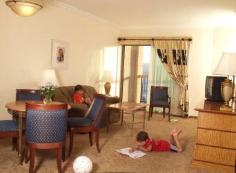 Мы отдыхали с детьми в Эйлате в декабре 2006 в Шератон Мориа и зашли в соседний (через мост) Хилтон. Производит впечатление картинами, статуями, прозрачными лифтами, фонтанами -помпезностью короче. Красиво! Были только в детской комнате (поменьше, чем в Шератоне) и в комнате дет. автоматов. До моря идти совсем немного, море восхитительное! Рядом торговые центры.