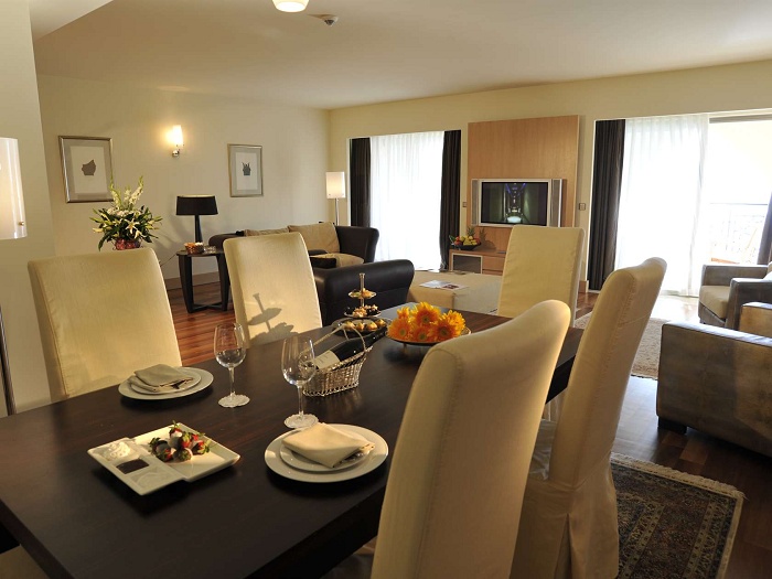 Corner Suite (48 кв. м) - номера оформлены в современном стиле. Состоит из спальни (кровать King-size) с частичным видом на море и гостиной с видом на гольф-поле. Спальня и гостиная связаны коридором, и у каждой комнаты есть дверь. Есть письменный стол и удобный диван.