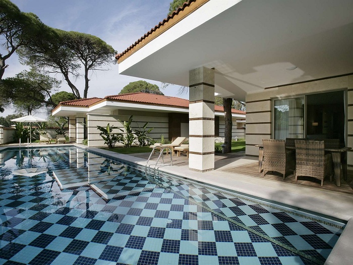 Royal Golf Villa (Two Bedroom Villa) (126 кв. м) - Виллы находятся посреди поля для гольфа PGA Sultan. Состоят из гостиной, кухни с холодильником, морозильником, печкой и посудомоечной машиной, 2 спален с дверью ( в одной спальне кровать king-size, в другой - twin-size), 2 ванных комнат (одна из них с джакузи), террасы с шезлонгами. Максимальное размещение - 4 человека. Есть общий бассейн на 2–3 виллы. Предоставляется детская коляска.