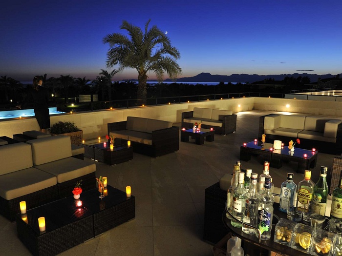 Junior Suite (48 кв. м) - номера оформлены в современном стиле. Состоит из спальни (кровать King-size) с видом на море и гостиной с видом на море сбоку. Спальня и гостиная связаны коридором, и у каждой комнаты есть дверь. Есть письменный стол и удобный диван.