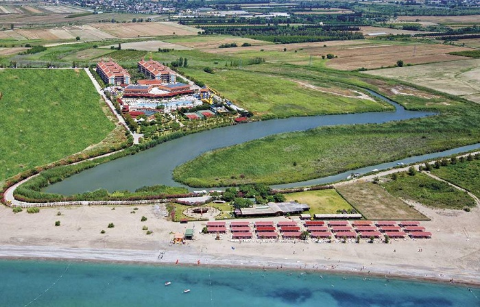 в 400 м от собственного пляжа, в районе Белека, в 50 км от центра Антальи, в 40 км от аэропорта Анталья.