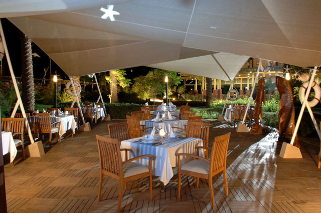 расположен в 40 км от аэропорта, в 50 км от центра Антальи, в 11 км от поселка Серик, на самом берегу моря.