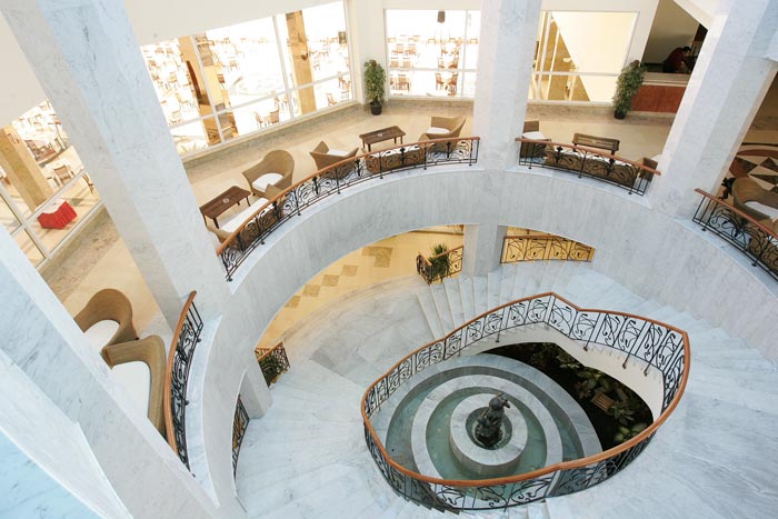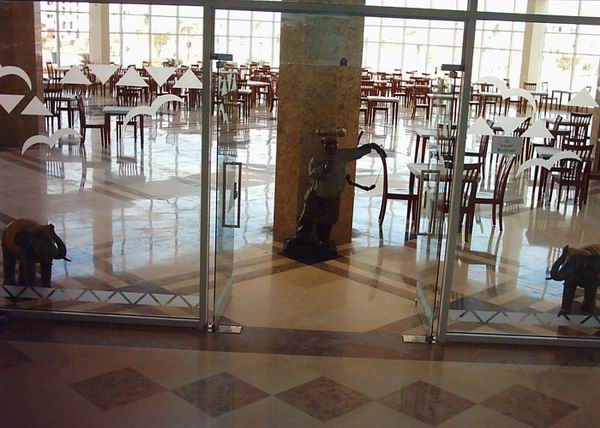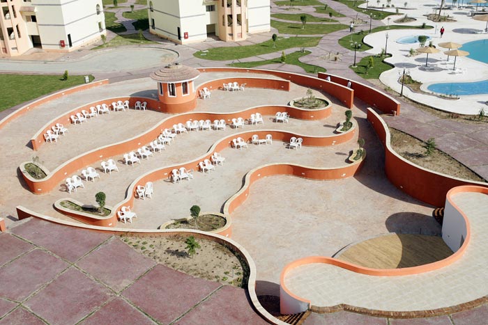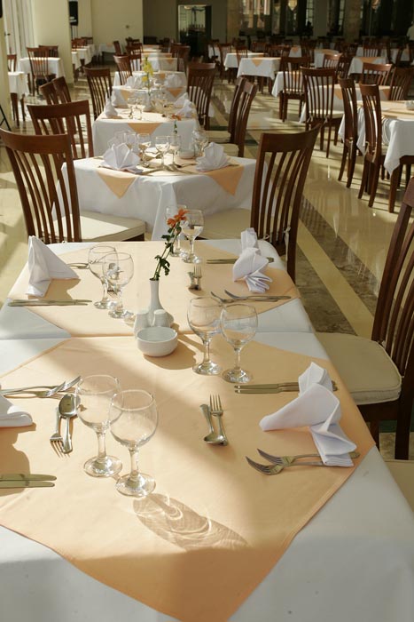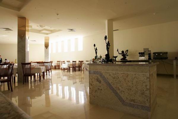 | На стойке ресепшн, администратор сразу же предложил оплатить сумму в 20 долларов за улучшенный номер (вид на море, или близко к ресторану и бассейну). Сотрудники отеля откровенно хамоваты, говорят вслед пошлости и предельно нагло себя ведут. Ресторан: стулья старенькие, скатерти протертые до дырок, с тянущимися затяжками и нитками. Посуда убитая, с трещинами, стаканы с отбитыми осколками, вилки, ножи, ложки зашарпанные донельзя. По питанию: Уровень тройки, но никак не 5ки, и даже не 4ки. Мы постоянно удивлялись, как же повара умудрялись испортить все, что можно. Блюда были либо пересолено, либо переперчено, либо недоваренные, либо пережаренные, либо сухие, ну или просто безвкусные. Фрукты: незрелые, несладкие и сухие мандарины, апельсины, дыня, гуава, финики. Овощи: острый перец, помидоры, огурцы, капуста, ужасно невкусные оливки – ВСЕ! Спиртное: если в лобби баре, то еще более-менее приемлемое качество, то в баре на пляже разбавлено донельзя. Официанты: – о, ужас! - грязные, в разной форме и сунутся прямо поверх и через головы забирать посуду и стаканы. Имели настолько жалкий и тоскливый вид, что было невыносимо на это смотреть!! Кофе – единственно - растворимый нескафе. Чай одного вида – просто черный, по вкусу – ужасного качества. Соки яблоко, апельсин, манго – сугубо юппи (порошкового) происхождения. Соков в пакетах – типа томатный и т.д нет. Завтрак – каждый день одинаково – соевые сосиски, крупа кускус, фасоль, макароны коричневые, яйца жаренные, вареные, сыр и йогурт одного вида – никакие. Есть нечего. Все невкусно. Фруктов нет. Выпечка булки и выбора нет. Обед практически без выбора снова же. Рыба невкусная. Мясо жесткое фрикадельки или говядина. Картофель был разный. Только это просто нереально, но факт – постоянно умудрялись его так ужасно невкусно приготовить, что удивлению не было конца. Фри был лишь в другом ресторанчике у бара возле бассейнов. Но и эта картошка была также ужасна по вкусу, недожаренная. Салаты – даже пробовать не хотелось – везде холодные макароны или перемешано непонятно что непонятного происхождения и неаппетитного вида. Ужин тоже недалеко ушел. Спиртное – вино – какой-то крашеный компот с пузырями… Сухим вином не пахло. Пиво также разбавлено. И все остальное ни о чем. Хорошо, что в аэропорту зашли в Duty Free… В номерах предусмотрены халат и тапки. Но их там нет! На просьбу предоставить эти халаты и тапки было отказано двумя администраторами рег. – причина: даются только вип персонам (сказано одним админом), даются только тем, кто постоянный клиент – 2 и более раза бывшие в отеле (сказано вторым админом), а третья сказала что это возможно за отдельную плату без проблем. На пляже сотрудники задают пошлые вопросы (ты жена или любовница?). В номере приходилось накрываться простыней и пледом с пятнами человеческого происхождения. Ночью спать холодно. Кровать - при попытке сесть на нее, сразу же жаловалась невероятным скрипом, указывающим на постоянное применение кровати любвеобильными парами в длительный промежуток времени… Душ – ограждения для него как такового, кроме занавески-не было. Все лилось прямо на пол, также под умывальник, унитаз и становилось большой лужей от стены до стены. И поэтому постоянно приходилось либо затирать полотенцем по полчаса, либо смириться и ходить с вечно мокрыми ногами. Полотенца меняли