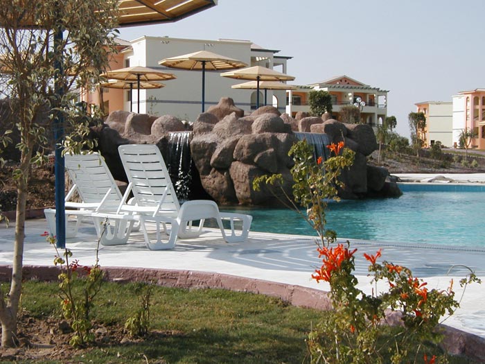 | Сначала было не так плохо. Но потом, это просто ужас. Мы летели всей семьей (я, муж и дочка 2,6 года) от Pegas Touristik, никому не советую обращаться к этому тур оператору. Потом поймете почему. Прилетели ночью, номер дали хороший, с видом на море и на часть бассейна. Убирали в номерах ежедневно и хорошо (чаевые 1$). ПИТАНИЕ плохое, ребенка накормить практически нечем. Нам говорили, что в этом отеле есть детское меню - нагло врут!!! Детская кухня там только вечером и то, дают картофель фри, мини пиццу, могут дать макароны, но они у них всегда холодные, и какое-то мясо в панировке напоминающие наши полуфабрикаты из пакетов. Еще дают сосиски - неприятно вида, и острые на вкус - после них ужасно горит во рту. И это детское питание - я просто в шоке! Овощи у них не свежие, помидоры протухшие. Практически все мучиются с животом. Испытано на себе и по рассказам отдыхающих. На кухне русский практически никто не понимают - так что наврядли вы дождетесь целесообразного ответа о диетическом питании и отдельного меню для ребенка (а в Pegas Touristik говории, что такая услуга предоставляется). АНИМАЦИЯ. Анимация есть, но скудная. Практически все хорошие аниматоры уехали, остались местные, которые нам не понравились. Для детей никаких развлечений нет, кроме мини диско вечером. Есть детская площадка, но она находится в стороне и на отшибе на самом солнце пеке, а когда дуют сильные ветра - там просто сносит. Такое ощущение, что им просто в самый последний момент пришло в голову ее построить. МОРЕ: его нет, просто нет. Идти нужно метров 300, да и то кто хочет просто там поплавать наврядли удастся, т.к. одни корралы. Зато для тех кто плавает с маской - там настоящие открытие, очень красивый и удивительный подвдный мир, можно увидеть черепаху. Можно конечно поплавать в небольшом кусочке моря соседнего отеля, но могут выгнать. ТЕРРИТОРИЯ: большая и бестолковая, мало зелени. Глаз не радует. СЕРВИС: страдает. К примеру вы можете ждать официанта с заказанными напитками 15 минут, а потом не выдержав попросите принести другого. В баре вас могут просто не заметить или никак не отриагировать на вашу просьбу. А еще они подсмеиваются над туристами. Что не очень то приятно. В этом отеле на всех одевают браслеты. За потерю штраф 20 евро. С браслетом вы более менее человек - без браслета вы никто. Так же вам выдаю карточки на полотенца, за утерю карточки тоже штраф - 20 евро. А теперь об отъезде: Отезд у нас был долгим и мучительным. Должны были уехать 28 мая в 21:00 из отеля, вылет 00:40 по местному времени. Из номеров выганяли в 12:00 (хотя отель пустой). Наш гид не затруднил себя сообщить об этом факте, ведь в Pegas Touristik уверяли что никаких проблем не будет. Нам пришлось доплотить за номер и браслеты до 18:00 30 евро, что бы было можно уложить дочку нормально поспать в номере. В 18:00 при сдаче номера, нам никто не сказал, что положена квитанция на питание. Мы с мужем как два идиота забились втихоря в углу ресторана, что бы поужинать. Все время прятали одну руку, что бы охрана не заметила что на нас нет браслетов. А то скандал был бы обеспечен (так было с украинскими туристами). Дальше больше. Мы попали в число тех туристов, которые столкнулись с задержкой рейсов из-за нехватки авиационного керасина. О том, что самолеты не летят в Хургаду (в числе которых оказался наш) было известно в 18:00, а то и раньше по Московскому времени. Не наш гид, кото