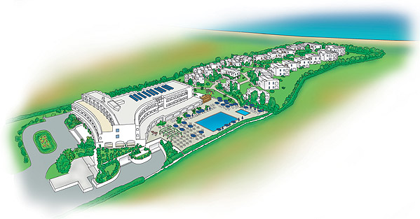 И центральный корпус, и построенные в эгейском стиле небольшие белые бунгало как будто прячутся в живописных садах, в то время как песчаный пляж можно было бы назвать пристанищем тишины и спокойствия. В садах и на протяженном песчаном пляже много места для принятия солнечных ванн.