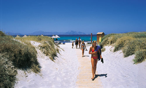 Пляж: протяженный песчаный пляж и море, которое углубляется постепенно.