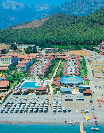 в 65 км от аэропорта г. Анталии, в 5 км от Кемера в курортном местечке Кириш, на самом берегу моря.