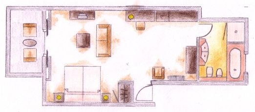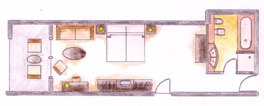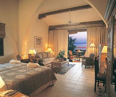 • Executive Suite with Panorama View (57 кв. м) - с панорамным видом на море и на залив Pissouri. Номер имеет зону спальни и зону гостинной, частично разделенные деревянными перегородками. Большая ванная комната с большой ванной, отдельная душевая кабина, две раковины, биде и большое зеркало добавляет комфорт. Некоторые из номеров предлагают большую ванну с джакузи. Есть камин. Размещение: 1-3 человека.