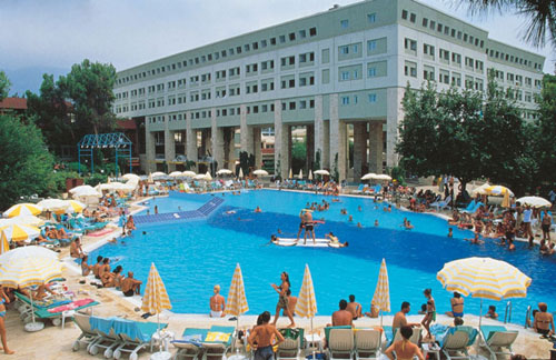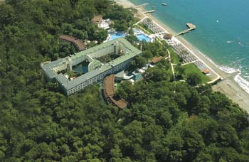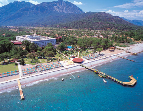 в 50 км от аэропорта г. Анталия и в 9 км от г. Кемер, в пос. Гёйнюк, на самом берегу моря. Отель построен в 1990 году, общая площадь 89 000 кв.м, последняя реставрация сделана в 2005 году.
