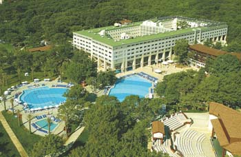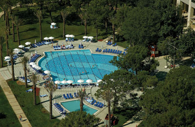 Отдыхали со 2.06.06 по 13.06.06 семьёй.Я,муж и сынулька 2 с половиной лет.Если выводить оценку сразу,скажу так-для семейного отдыха-бэст зе бэст!!!А вот просто влюблённой парочке было бы скучно.Территория огромная и очень зелёная.5 бассейнов,есть даже горки.Приятным удивлением для нас был минизоопарк-ребёнок был в восьорге.много развлечений в мини-клубе много,девочки аниматорши добрые и приветливые.Но анимамации днём практически не видно.Просто всравнении с другими отелями,где с тебя в хорошем смысле практически не слезают,в этом тебя обходят стороной.Лежи себе,загорай.Единственное,к вечерним шоу не придраться.От ведущего до сих пор под впечатлением.Мурат респект тебе!!!От Алекса русского Тарзана и его жены Маши-)))Кормят на ура!Единственное завтраки слабоваты.Но ужин,полдник,обед и всё что в промежутках переккрывают это слихвой!Если с малышом-поедем ещё!Если одни-вряд ли.На 5 звёзд отель соответствует!