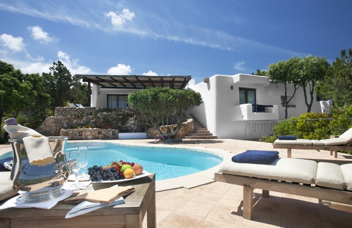 Villa Casa di Sopra (169 кв.м.) - "Вилла Верхний Дом". Великолепный дом вдали от Вашего дома, является бесспорным раем. В 3-х спальнях находятся двуспальные кровати Luxury Collection, спинки которых изготовлены в виде солнечных лучей, отделаны текстилем, что делает их неповторимыми. Большая гостиная включает в себя столовую и зону отдыха, кроме того, в каждой спальне имеется ванная комната, где органично сочетаются плитка и дерево: гармоничное слияние терракотовых и пастельных тонов, обрамленное эксклюзивными дизайнерскими элементами ванной от Luxury Collection. С террасы открывается прекрасный вид лазурного моря, с вкраплениями парусов, яхт и мелких островков. Прекрасно наслаждаться этим видом, находясь в бассейне на террасе, принимая солнечные ванны или находясь в гостиной. Содержимое богатого частного винного погреба виллы является великолепным дополнением к трапезе. Вся мебель и предметы интерьера являются изделиями местного производства и выполнены в традиционном стиле Сардинии.