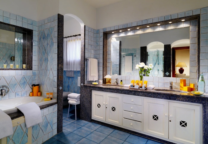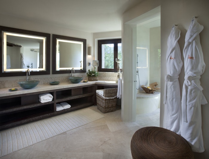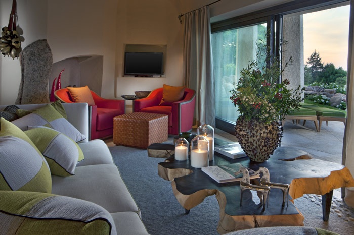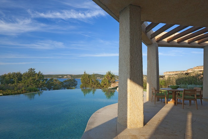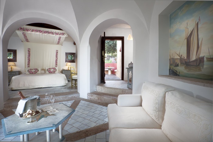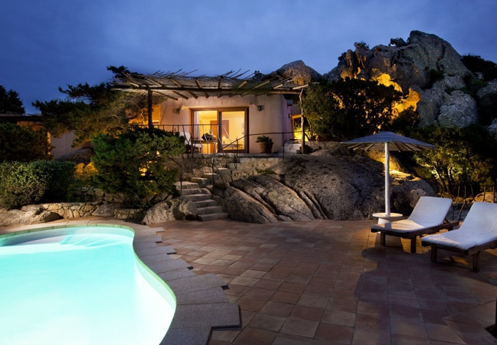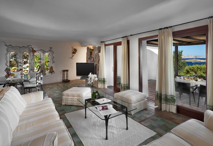 Villa La Roccia (46 кв.м.) - "Вилла скала". Полная конфиденциальность и неприкосновенность частной жизни обеспечивается на данной вилле. Размещенная на холме, прямо над пляжем отеля, она предоставляет гостям возможность пользоваться всеми услугами отеля – рестораном, баром, пляжем и бассейном – в дополнение к многочисленным удобствам виллы. Планировка виллы идеальна для отдыха. Успокаивающая спальня с двуспальной кроватью Luxury Collection дополнена отдельной гостиной, 2 ванные комнаты (одна с джакузи). Два балкона помогут ощутить приятный климат побережья Коста Смеральда. Первый балкон предназначен для отдыха и принятия солнечных ванн, а на втором находится бассейн из розовой плитки с подогревом. Рядом с бассейном разместилась столовая зона. Можно также получить неизгладимое впечатление от приёма пищи в комнате, из которой открывается яркий вид.