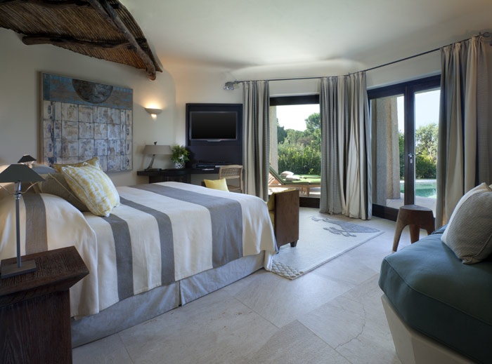 Villa Corbezzolo (67 кв.м.) - "Вилла земляничное дерево". Вилла находится в месте, которое можно по праву назвать пределом мечтаний об интимной обстановке: место, где успокаивающие пастельных тонов стены и плитка гармонируют с национальным сардинским убранством комнат. Спальня оборудована двуспальной кроватью коллекции Luxury Collection, что гарантирует спокойный отдых в тиши спальной комнаты. Две ванные, просторная гостиная с большим балконом, который можно использовать как столовую и зону отдыха, где гости могут расслабиться, как только вечерние тени от деревьев достигнут берега частного пляжа.