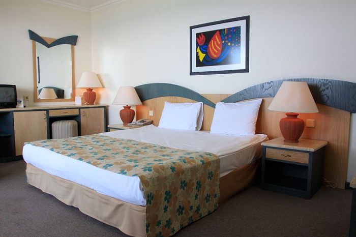 • Standart Room Sea View (25 кв. м) – состоит из спальни, ванной комнаты, балкона/террасы. Вид на море. Макс. размещение – 3 чел.