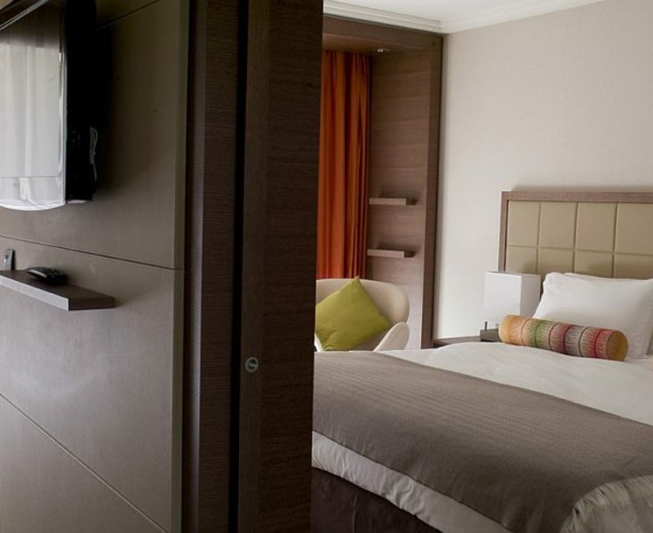 Junior Suite (40 кв. м) - номер оформлен в теплых тонах, состоит из спальни, гостиной и ванной комнаты с душем, балкона со стульями. Два телевизора с плоским экраном. С видом на город или сад.