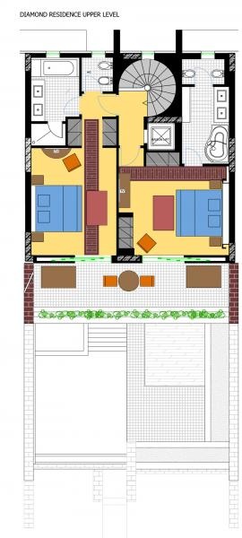 Diamond Residences (Two Bedroom) (150 кв.м.) - роскошная резиденция у моря с прямым выходом к частному песочному пляжу и непосредственным видом на Эгейское море. Гостиная с открытым камином и высокоточной электроникой, включая телевизор с жидкокристаллическим экраном и системой объемного звука ведет к собственной террасе, где находится открытый подогреваемый бассейн с морской водой; 2 спальные комнаты, каждая со смежной роскошной мраморной ванной комнатой, ванной с водным массажем, душевой, гостевой туалет. Кухня, кладовка, прачечная и комнаты для персонала дополняют уникальную резиденцию. Максимальное размещение - 5 человек.