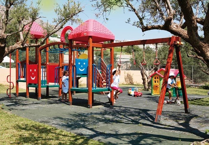 Детский клуб курорта занимает территорию более 3000 кв.м. на открытом воздухе и более 700 кв м. помещений, в детском клубе работают опытные воспитатели, под руководством и присмотром которых детям предлагается разнообразная программа развлечений и занятий: игры в бассейне, пляжные игры, баскетбол, настольный теннис, обучение Критским традиционным танцам, уроки кулинарии, подвижные игры на лужайке, прикладное искусство, пантомиму, строительство замков из песка, аквагрим и т.п. Бесплатные развлечения также включают новые современные водные горки в бассейне в детском клубе Children’s Park. Один раз в неделю организуется рыбалка, во время которой родители и дети могут насладиться уникальным опытом совместного путешествия в открытом море, и с помощью простого крючка поймать большую рыбу.