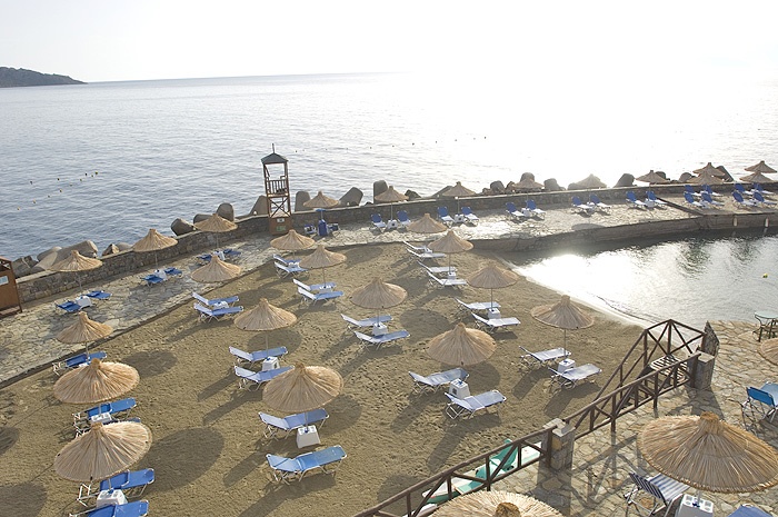 на берегу залива Мирабелло, в 3 км от Элунды, в 7 км от г. Агиос Николаос, в 65 км от аэропорта г. Ираклион.