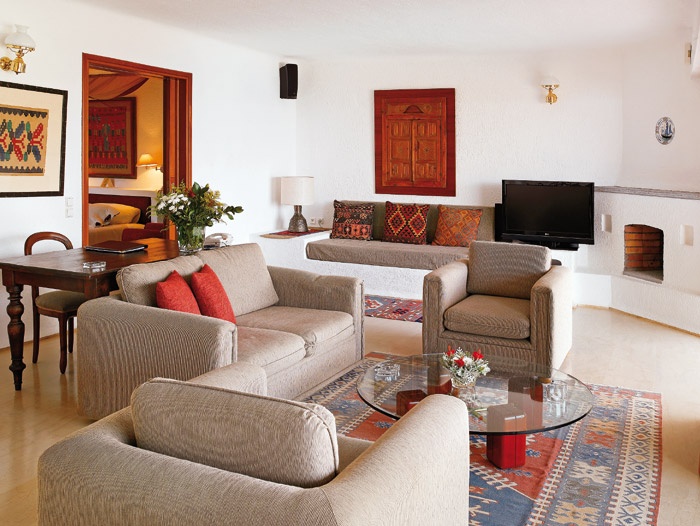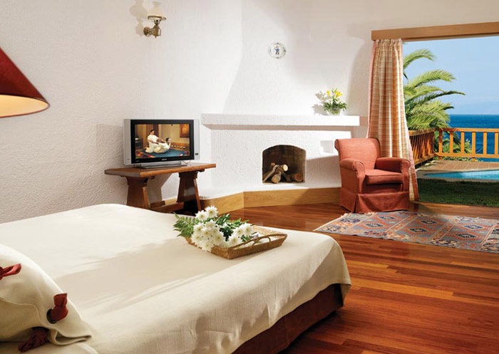 В комфортабельных номерах в основном здании и отдельно стоящих бунгало, — стильные интерьеры в светлых тонах, сочетающие современный дизайн и традиционный греческий колорит, с отделкой из натуральных дерева и камня, элегантной мебелью, оригинальными украшениями, балконами и террасами с чудесным видом на залив Мирабелло и живописные сады.