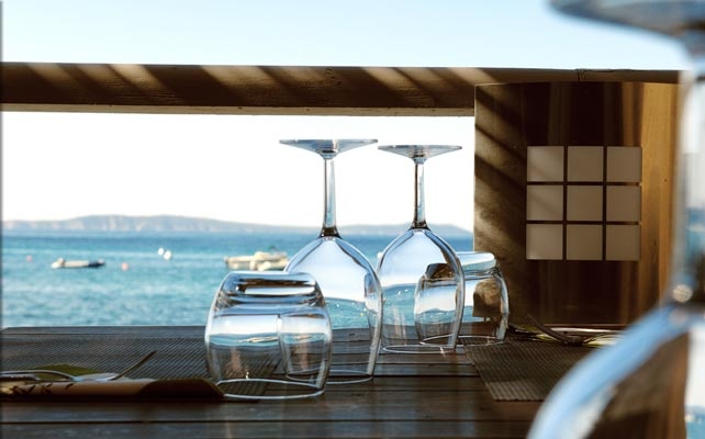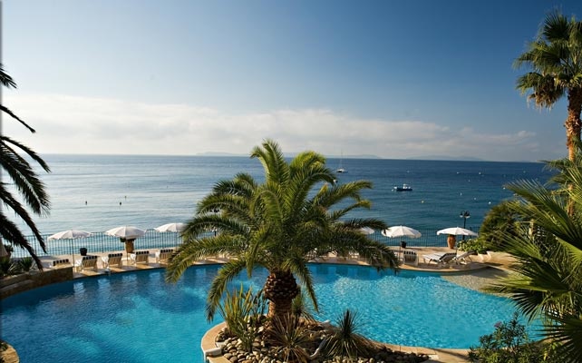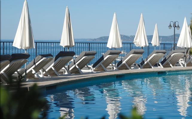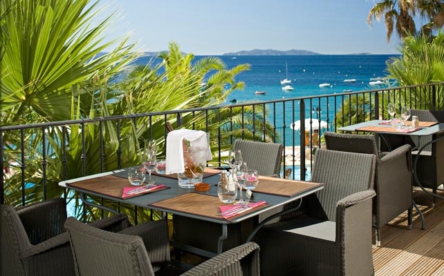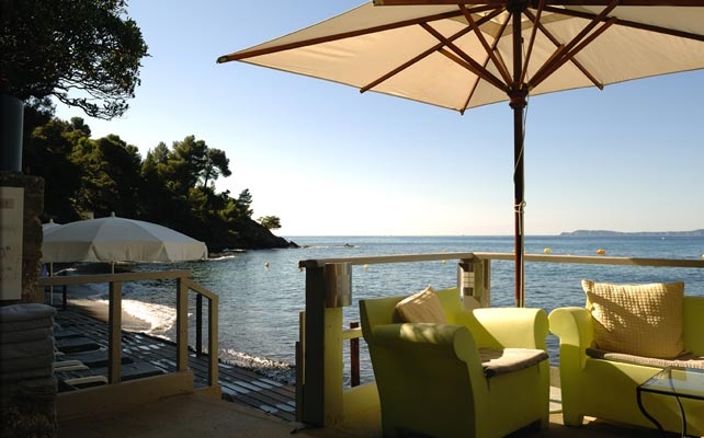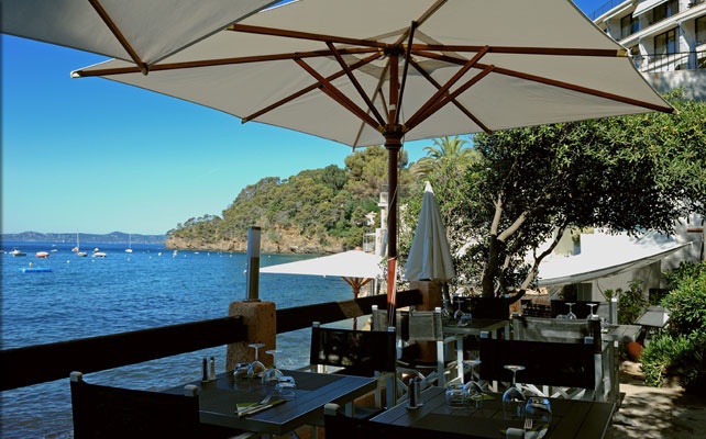 в живописной бухте залива Сен-Тропе, в 30 м от моря (напротив острова д'Oр), между Сен-Тропе (25 км) и Лаванду (15 км), в 300 м от центра местечка Le Rayol-Canadel и Ботанического сада Domaine du Rayol, в 30 км от аэропорта Тулона, в 120 км от аэропорта Ниццы.