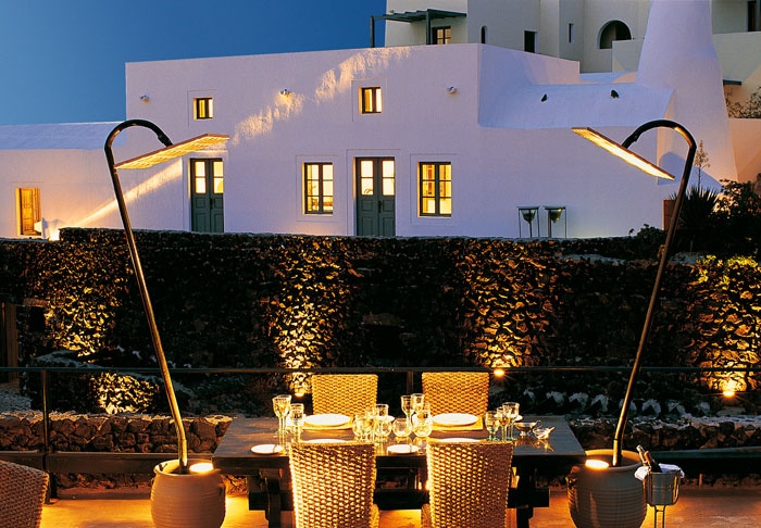на острове Санторини, в курортном городке Мегалохори, в 5 км от столицы острова Тира и 15 минутах езды от аэропорта Санторини.