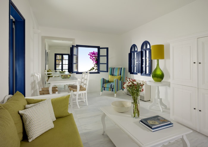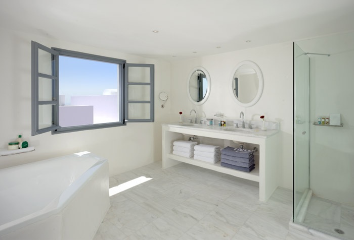 Aegean Suite (60 кв.м.) - номер состоит из спальни с кроватью в стиле люкс, гостиной со столовой зоной, ванной комнаты с ванной с эффектом гидромассажа и душем, террасы/патио с открытой джакузи; выходит на виноградники и на море. Может соединяться с номером того же типа. Номер оборудован 2 телевизорами в гостиной и спальне, DVD и СD-плеером; имеет мраморные полы, камин, гардеробную.
