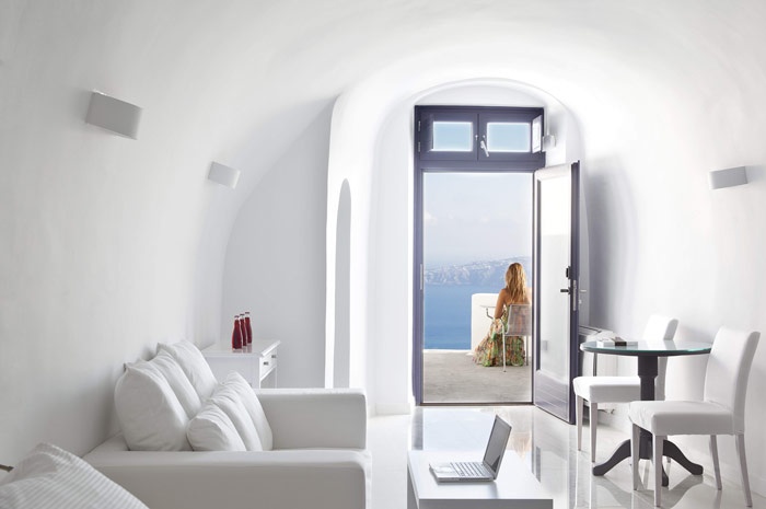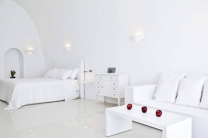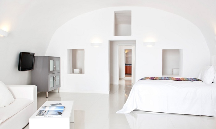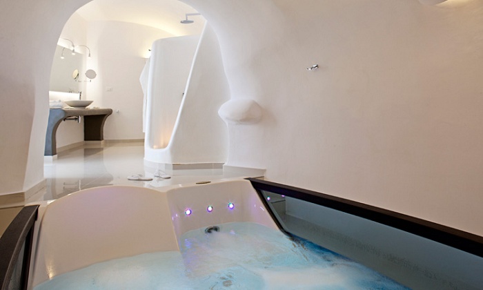 Chromata Suite — состоит из спальни, гостиной, ванной комнаты с ванной-джакузи, террасы. Вид на море.