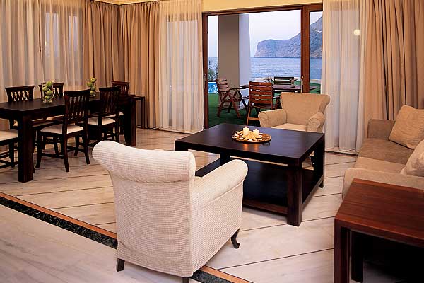 2-этажные роскошные номера с видом на море. Площадь 60 кв.м., макс. размещение - 2 взрослых и 3 детей.