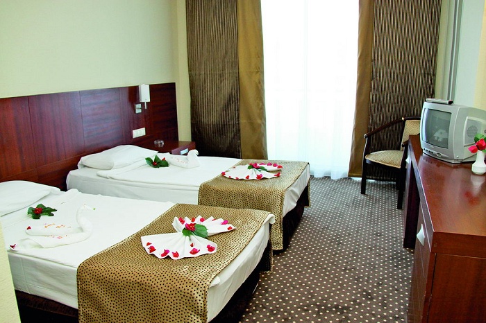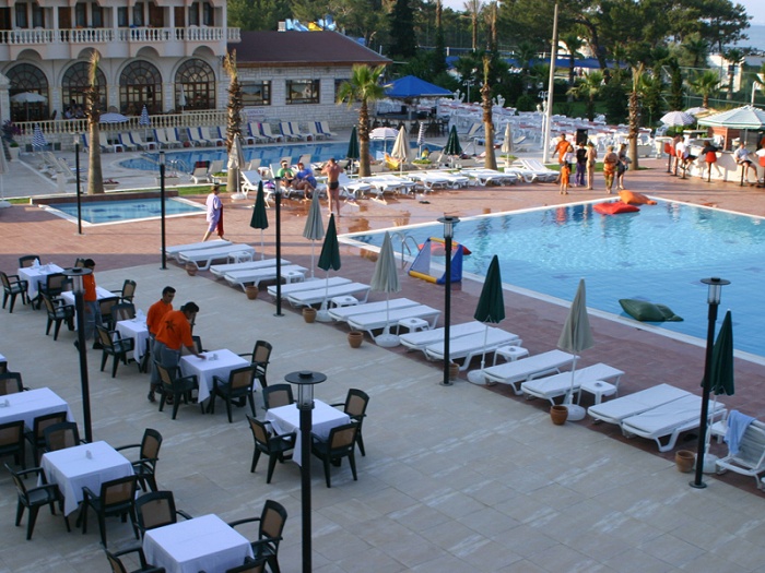 | Отдыхали в июне 2007 г.Здание и номера хорошие, уборка тоже ничего. Территория маленькая,рядом старое кладбище. Еда ужасная - мясо можно получить только отстояв огромную очередь, да и то, если прийти за пол-часа до открытия. В обед - не мясо, а соя.На гарнир можно поесть перловки - супер! В Турции много других отелей, не берите этот! | ||