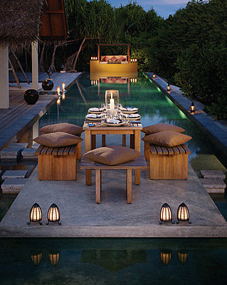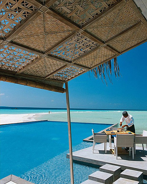Вилла с бассейном, с видом на пляж и на океан, состоят из павильона-спальни, павильона-гостиной, ванной комнаты, внутренней открытой зоны (137 кв.м./260 кв.м.) с садом, открытым павильоном с зоной отдыха и обеденной зоной и открытым душем, располагаются в южной части острова на пляже.