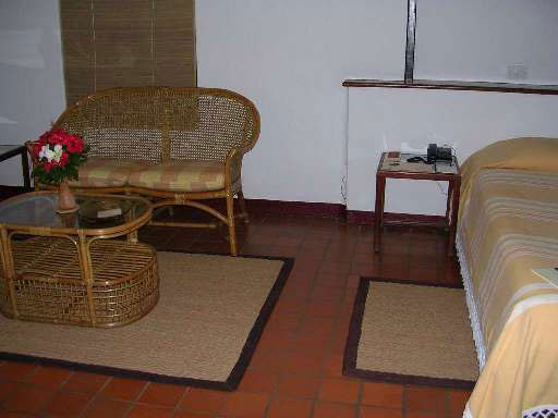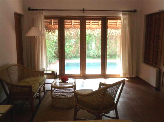 Площадка перед каждым бунгало оборудована плетеной мебелью - два кресла и столик с керосиновой лампой. Этот отель известен своим пляжем, который тянется на несколько сот метров. В отеле очень хороший аюрведический центр.
