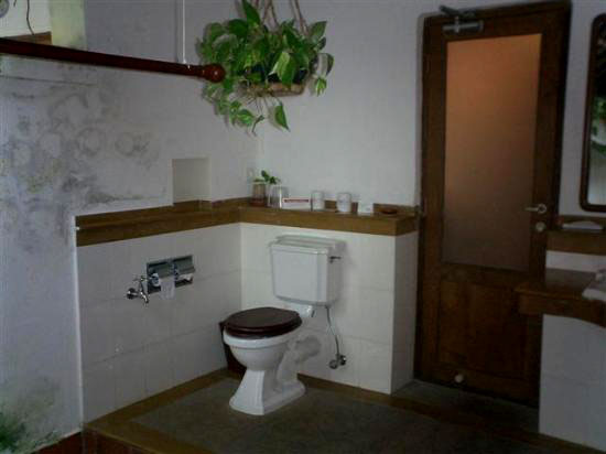 Санузел по традиции этих мест - оборудован "садиком для медитаций" - 3 стороны такого санузла выглядят как классический санузел - а вдоль четвертой есть небольшая площадка из гальки и растут зеленые насаждения. В этой же стене сделана деревянная калиточка, открыв которую можно попасть прямо из душа на зеленую лужайку.
