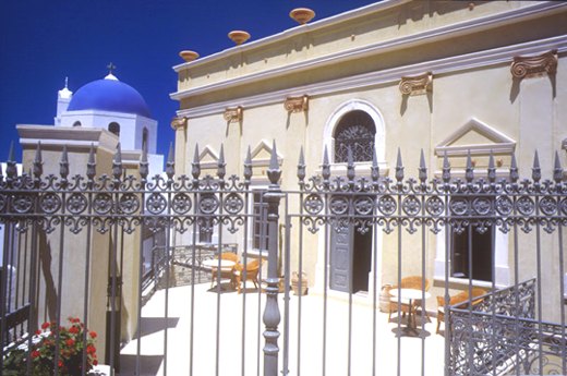В 1750 году на месте отеля Zannos Melathron была построена вилла в стиле "Ренессанс", а уже в XIX веке мастер своего времени Майкл Занос сделал к вилле небольшую пристройку. Позже оба здания были реконструированы в отель класса "de luxe". Сейчас бриллиантово-белый отель является лицом острова Санторини.