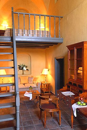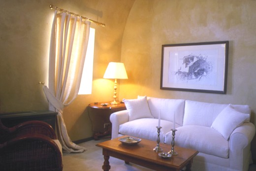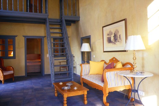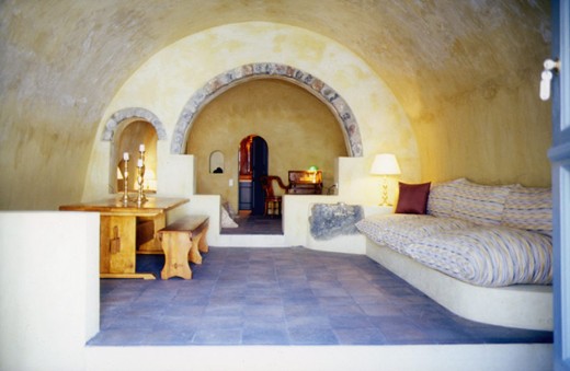 Каждый номер имеет свой собственный неповторимый дизайн, сочетающий в себе очарование старины и современного комфорта. К оформлению интерьеров приложил руку известный дизайнер Янис Зекленис – последователь знаменитого Филиппа Старка. Во всех комнатах есть антикварная мебель и украшения ручной работы. Из окон открывается прекрасный вид на море и на вулкан. Все люксы имеют собственные имена.