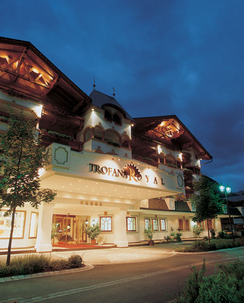 Trofana Royal стоит у подножья горного склона. Стилизованные под горные шале, богато украшенные деревом, здания отеля гармонично вписываются в окружающий ландшафт. Впервые Trofana Royal распахнул свои двери в 1996 году. С тех пор, благодаря современному комфорту номеров, большому оздоровительному комплексу, авторской кухне и безупречному сервису отель завоевал репутацию одного из лучших гостиничных комплексов курорта.Зимой 2009-2010 года в отеле открыты новые номера и сьюты в новом здании South-wing, а также новые обеденные залы и винный погреб.