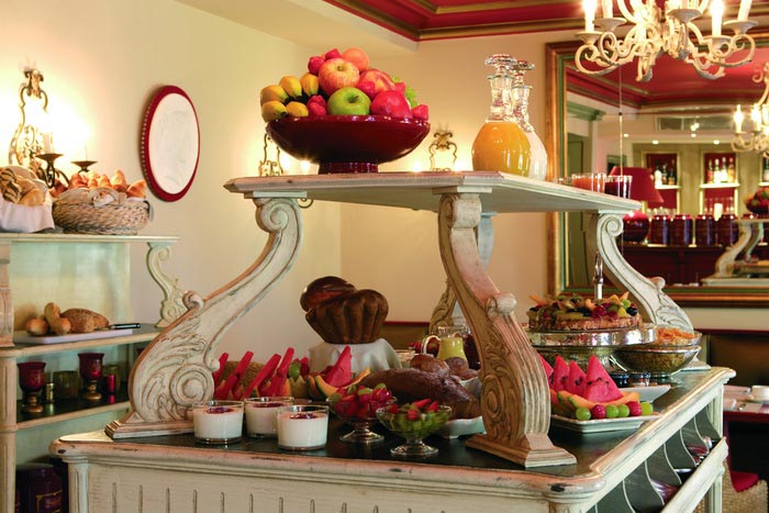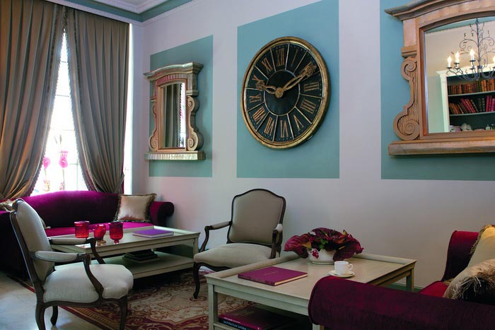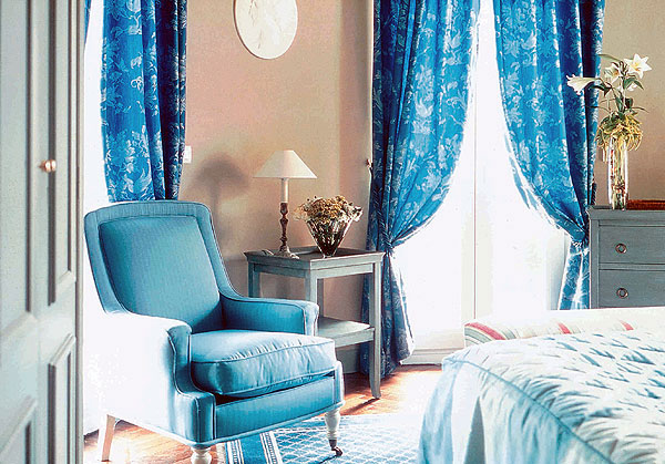 Все они оформлены в определенной цветовой гамме: сиреневые и серые тона на четвертом этаже, синие и бежевые на третьем этаже, оливковые и золотые на втором и оттенки какао на первом этаже. Спальни и гостиные декорированы в провансальском стиле XIX столетия, с использованием дорогих, благородных материалов и элегантной мебели светлого дерева. Особенное внимание уделено свету.