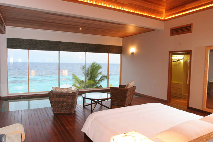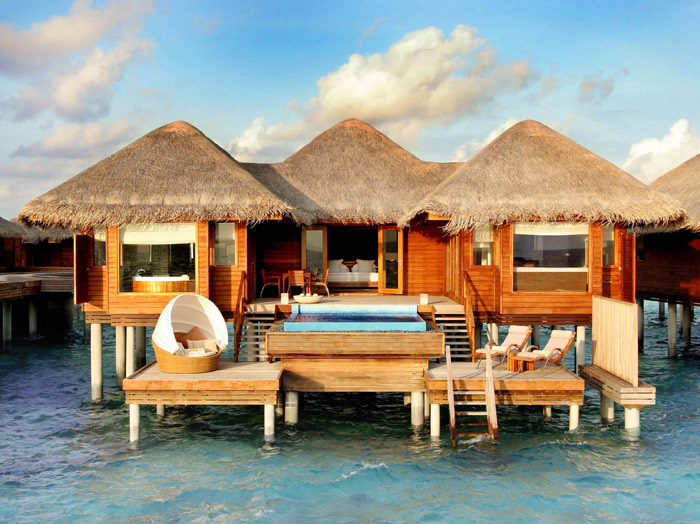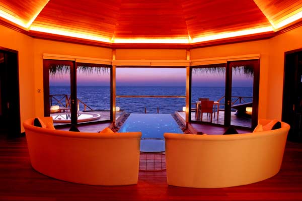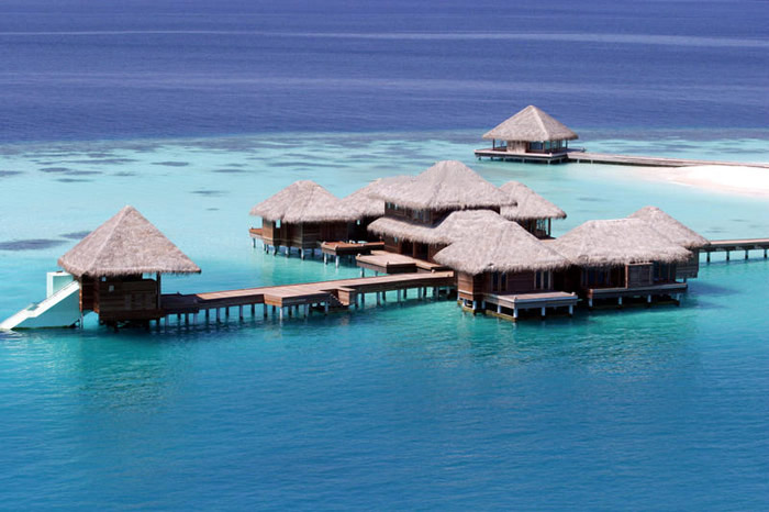 Отель Huvafen Fushi (Остров Мечты) – это первый в мире подводный SPA-курорт, состоящий из комплекса комфортабельных бунгало, расположенных на пляже и стоящих на сваях в воде. Декор номеров восхищает уникальным сочетанием суперсовременных технологий, островного минимализма, прекрасно сочетающегося с природным ландшафтом: открытые ванные комнаты с бассейнами и кушетками для дневного отдыха, плазменные экраны и музыкальные центры hi-fi, текстиль высокого качества, полы и мебель из ценных пород древесины.