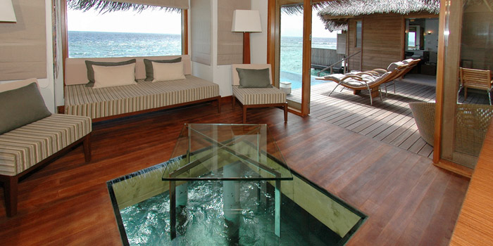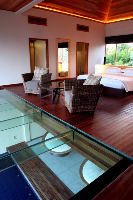 Двухуровневый номер расположен на берегу, с двумя спальнями. Спальня на верхнем ярусе имеет стеклянный пол с видом на бассейн, вторая спальня имеет частный выход на большой деревянный настил, с двумя ванными комнатами, гостиной, столовой, частным садом, с частным пляжем, собственным бассейном, джакузи на открытом воздухе.