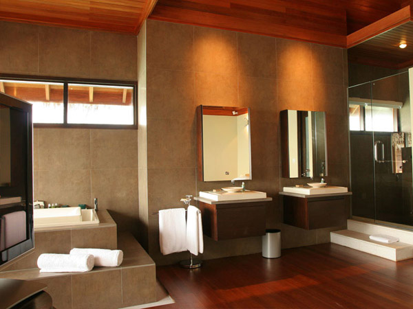 Водные бунгало расположены на сваях в воде. Состоят из спальни, ванной комнаты с ванной-джакузи, душем, двумя умывальниками и туалетом, гостиной со столовой зоной, открытой террасы с зоной отдыха и спуском к воде, собственного бассейна.