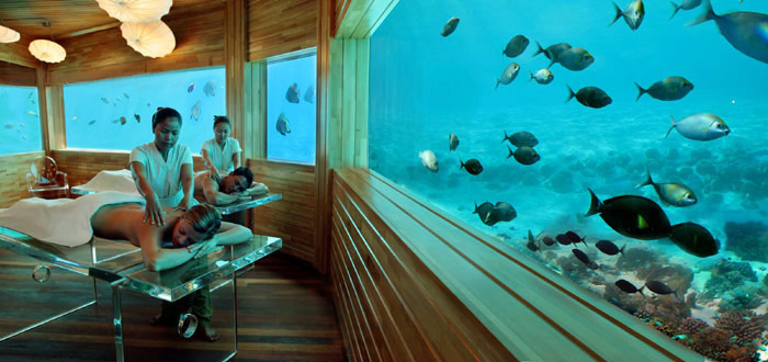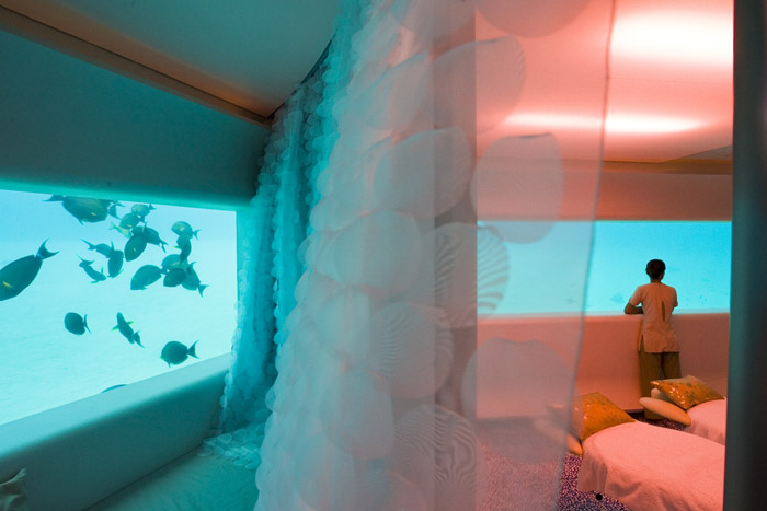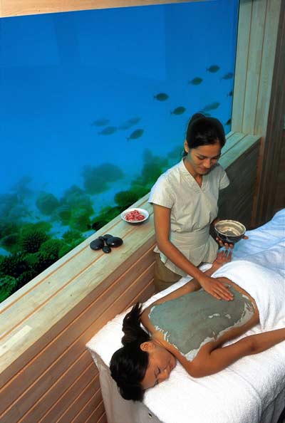 Знаменитый подводный Spa-центр "Per Aquum Spa" с подводными комнатами, имеющими стеклянные стены ниже уровня океана, состоит из кабинетов для массажа, кабинетов для гидротерапии, саун и паровых бань, просторной зоны отдыха с видом на океан, ледяной комнаты.