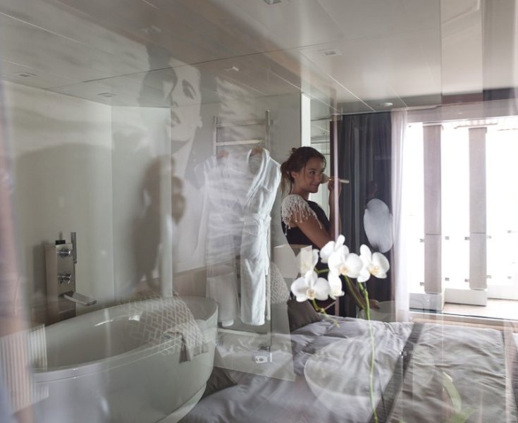 Luxury Room Facing the Sea (32 кв. м) - состоит из спальни, ванной комнаты с душем и ванной, с видом на море.