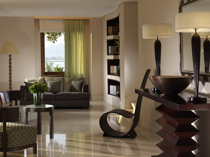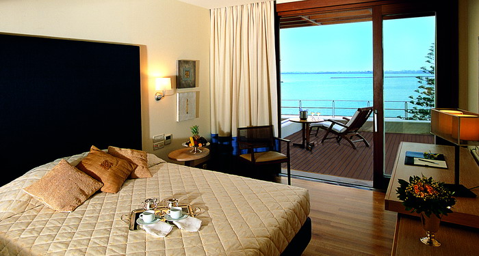 Luxury Suite Sea View – состоит из спальни с кроватью king-size, гостиной зоны, мраморной ванной комнаты с джакузи и паровой ванной. Макс. 2 взрослых и 1 ребенок (в детской кроватке).