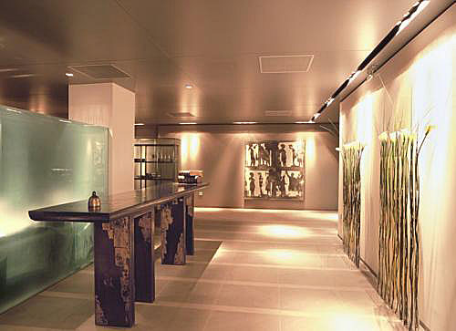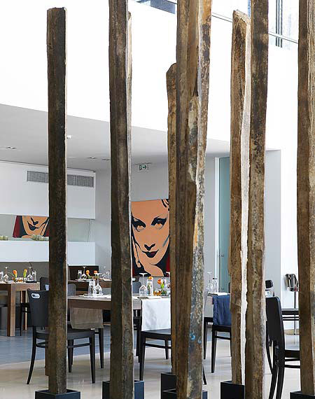 В просторном фойе отеля демонстрируются работы известных греческих художников.